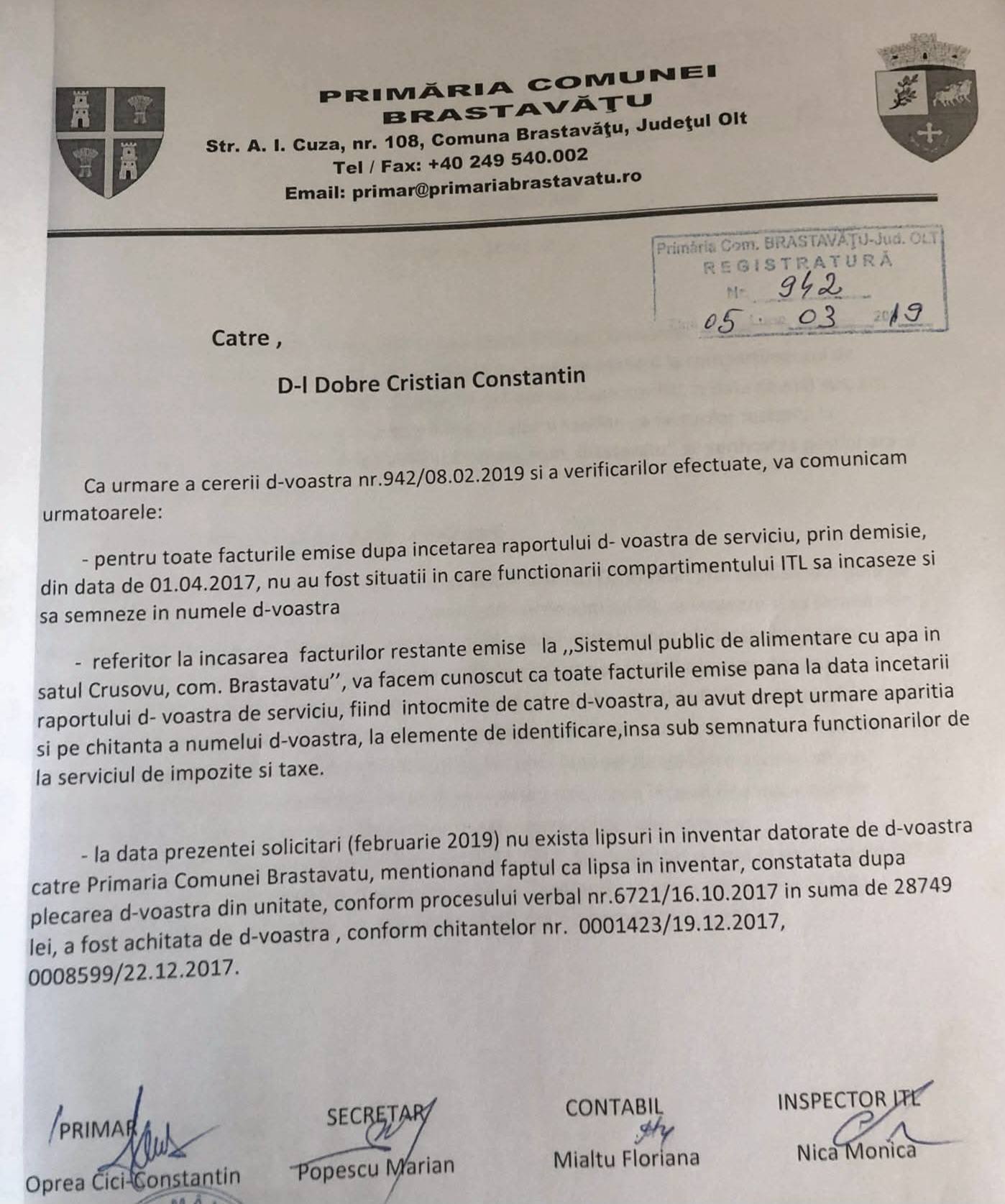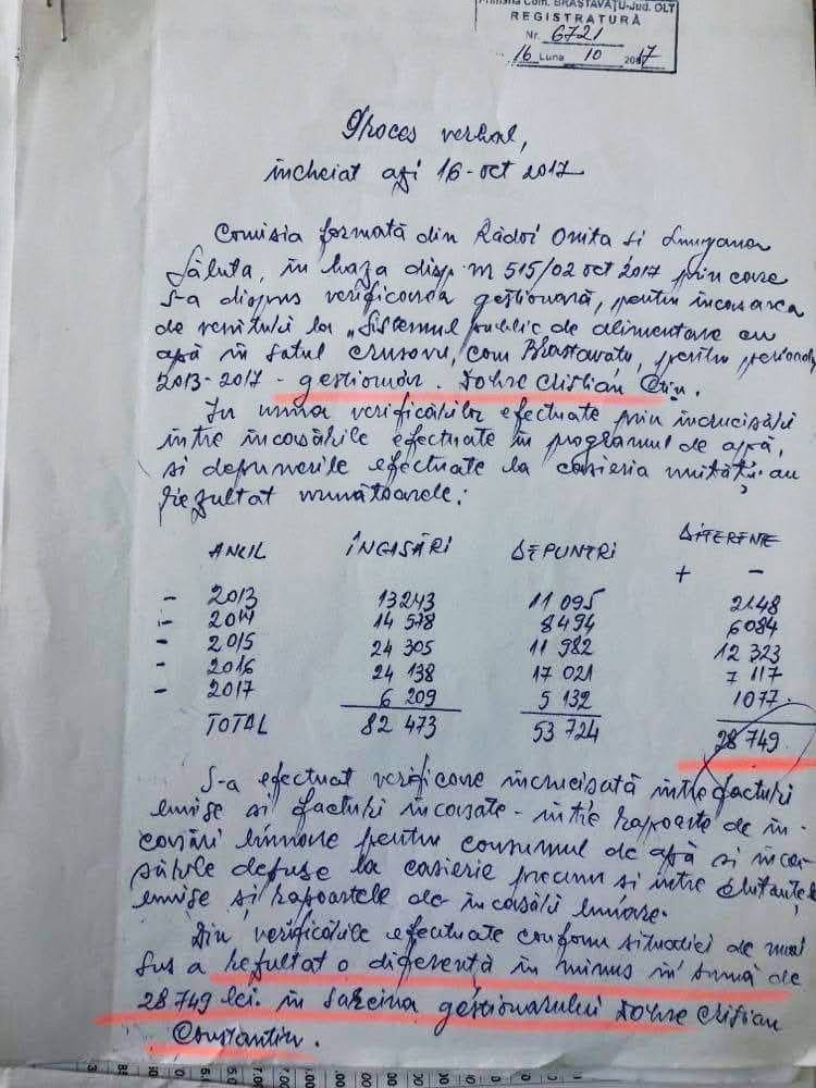 Dobre a funcționat ca gestionar la firma de apă din Brastavăţu, însă activitatea sa a lăsat în urmă o pagubă semnificativă.