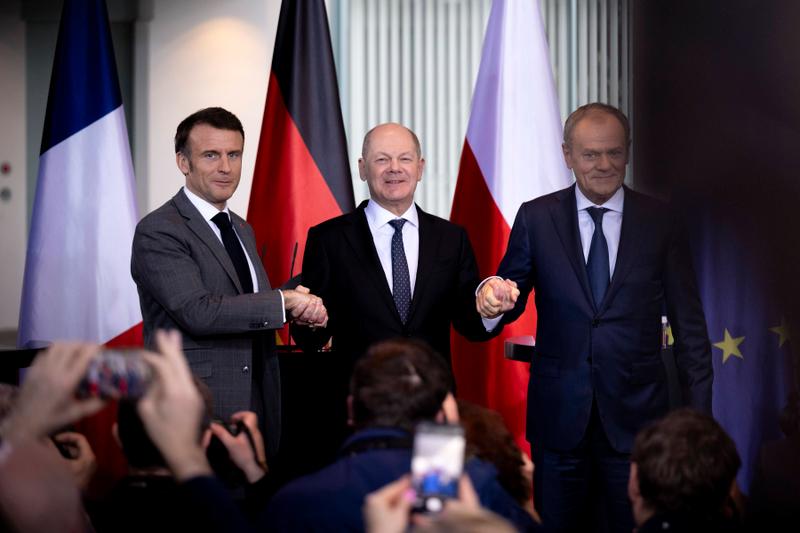 Scholz a fost prezent alături de președintele francez, Emmanuel Macron, și de premierul polonez, Donald Tusk.
